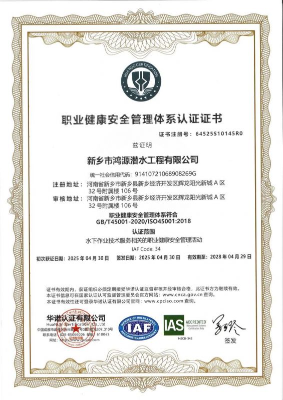 新鄉市鴻源潛水工程有限公司,有從事潛水行業二十多年的潛水團隊。公司具有獨立法人資格,注冊資金600萬元。   公司的潛水人員、潛水檢測人員、潛水焊接人員均經過正規培訓,全部持有國內權威機構頒發的資質證書。我公司水下焊接可靠,質量優良,技術過硬,可水下焊接鋼管樁,水下焊接犧牲陽極鋅塊,水下焊接連接梁,水下封堵焊接等等施工,報價合理,拒絕暴利,竭誠為您服務!水下電焊工程,水下電焊報價合理水廠電廠的水池、水道清淤、泵房清理、管道鋪放、攔污柵清污、更換閘門起落、導流洞、水庫壩體等維修施工水下補強加固:對水利電力系統水庫、大壩及沿海內河港口、碼頭等水工建筑物水下鋼結構或混凝土結構缺陷進行。無論是對現在或將來,都將是一項非常有意義的工作。水下焊接將成為水下作業,水下安裝,水下維修等水下作業工程中不可或缺的重要工藝手段.公司堅持“先進的技術設備.優質的服務質量.服務效率.熱情的服務態度,為生產經營理念,以拒絕暴利合理收費為原則立足全國市場。我們將以優質的產品與售后服務來打造用戶良好體驗。愿同新老客戶竭誠合作、互惠互利、共創輝煌!水下電焊工程,水下電焊報價合理,鋼圍堰清淤公司鴻源-水下電焊工程,水下電焊報價合理,鋼圍堰清淤公司,水下電焊工程。      新鄉市鴻源潛水工程有限公司我公司成功打造鴻源優質服務。公司的潛水人員、潛水檢測人員、潛水焊接人員均經過正規培訓,全部持有國內權威機構頒發的資質證書。經過多年經營,公司具備公司具有獨立法人資格。